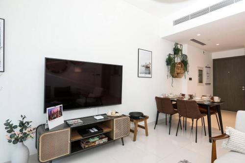 1BR Beachfront with Sun Loungers at Palm Jumeirah位于迪拜的朱美拉棕榈岛,距离巴拉斯蒂海滩(Barasti Beach)仅有不到一公里,配备户外游泳池、花园、私家海滩和露台。这家海滨住宿的客人可以使用阳台、免费私人停车位和免费WiFi。