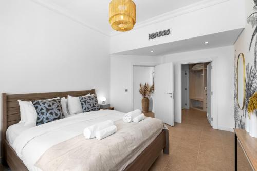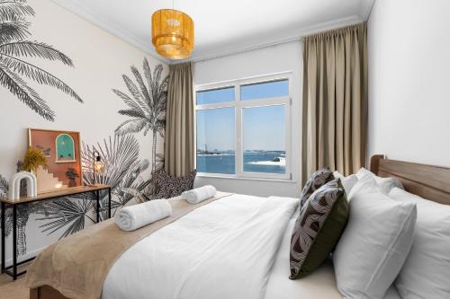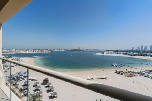 Private Beach 2 Bedroom Apartment with panoramic Sea View and Pool Palm Jumeirah坐落于迪拜的朱美拉棕榈岛,距离福伦德A海滩(Frond A Beach)仅有17分钟步行路程,配有户外游泳池、花园、私家海滩和露台。这家公寓配备免费私人停车位、24小时前台和免费WiFi。