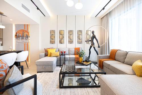 Elite 4BR Luxury Apartment, Burj Khalifa View, Opposite Dubai Mall, Infinity Pool, Mini Golf, PS5距离哈利法塔有17分钟步行路程,距离迪拜喷泉有3.5公里。迪拜国际机场距离住宿有13公里。