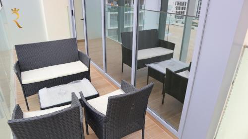 这家公寓提供2间卧室、3间浴室、床上用品、毛巾、平板电视、设施齐全的厨房以及市景露台。这家空调公寓还配备休息区、洗衣机以及3间带淋浴设施和浴缸的浴室。