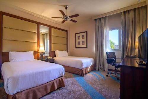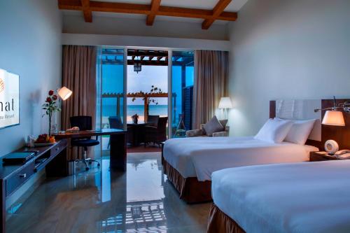 这家五星级度假酒店拥有800米长的私人白色沙滩,提供池畔酒吧、宽敞的室外游泳池以及享有阿拉伯海湾景致的典雅住宿。