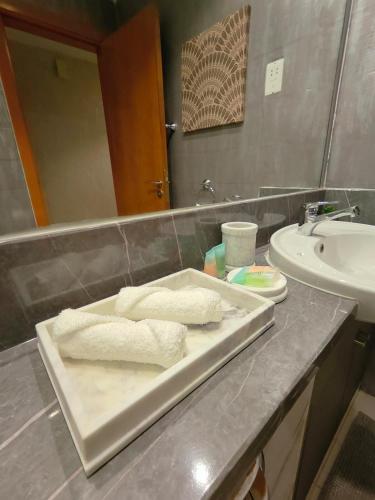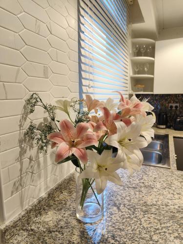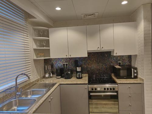 Luxury 2 BD, A Midtown Quintessential Community位于Sabkhah,提供户外游泳池和露台。这家住宿提供私人泳池、免费WiFi和免费私人停车位。