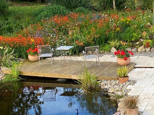 这家度假屋提供1间卧室、1间浴室、床上用品、毛巾、带卫星频道的平板电视、用餐区、设施齐全的厨房以及花园景露台。1间浴室配有淋浴设施和洗衣机,也配有免费洗浴用品和吹风机。