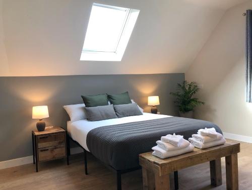 这家度假屋配有2间卧室、起居室、带冰箱和电热水壶的设施齐全的厨房以及2间带淋浴设施和吹风机的浴室。这家度假屋还配备平板电视、休息区、洗衣机以及2间带浴缸的浴室。
