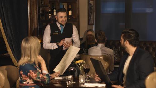 • Screens or physical barriers placed between staff and guests in appropriate areas