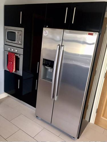 这家度假屋配备3间卧室、带冰箱和洗碗机的厨房以及1间带淋浴设施、吹风机和洗衣机的浴室。这家度假屋还配备平板电视、休息区以及1间带浴缸的浴室。