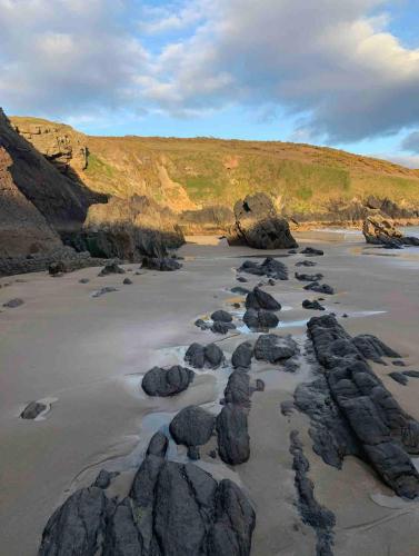 Ardmore's Modern Beach House坐落于沃特福德郡的阿德莫尔,配有庭院,享有花园景。这家住宿距离惠廷湾海滩(Whiting Bay Beach)有14分钟步行路程,配备花园和免费私人停车位。