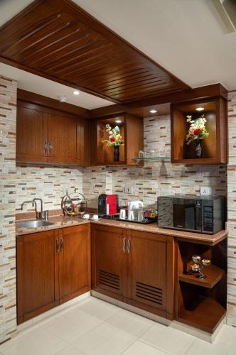 Air-conditioned rooms at Sultan Gardens offer a classic coloured décor with wooden furnishing. TVs with satellite channels are available in each room.