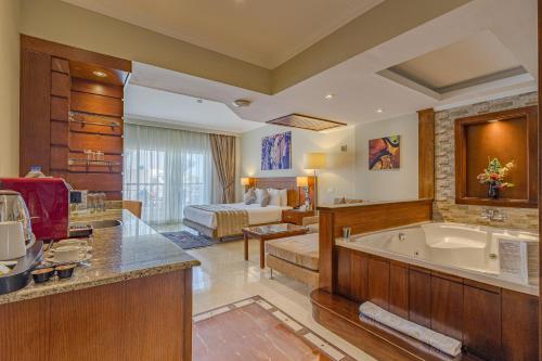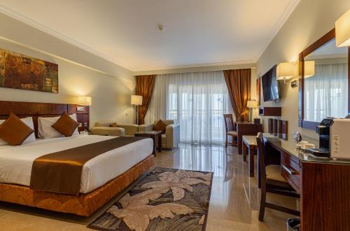 The resort also features a 24-hour Premium Coffee with an ice parlour, and a lounge bar with 2 big screens. At the Shallal Bar, you can taste freshly squeezed juices and daily snacks.