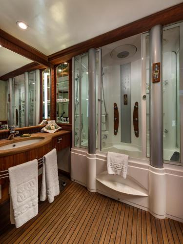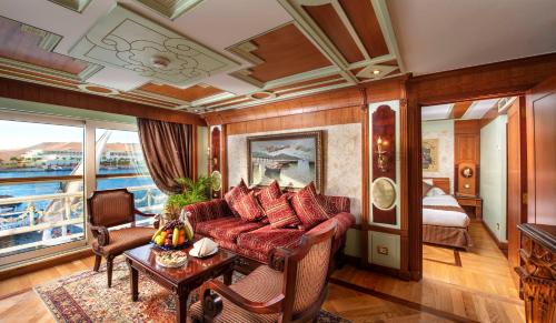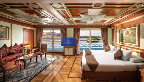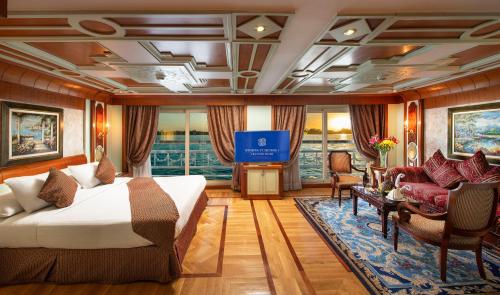 Sonesta St George Nile Cruise - Luxor to Aswan 4 Nights from Monday to Friday位于卢克索,距离Luxor Train Station有不到9公里,提供礼宾服务、客房、酒吧、免费WiFi以及按摩服务。这家住宿配有餐厅,还提供共用休息室、热水浴池和土耳其浴室。spa和康体中心拥有健身中心、室外泳池、桑拿房和露台,可供所有客人使用。