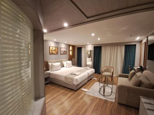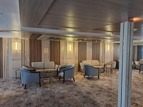 这家游艇为客人提供空调客房,配有衣柜、电热水壶、迷你吧、保险箱、平板电视以及带淋浴设施的私人浴室。MS Chateau Lafayette Nile Cruise - 4 nights from Luxor each Monday and 3 nights from Aswan each Friday的客房拥有休息区。
