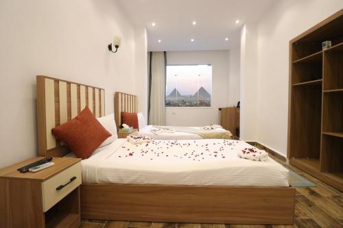 这家酒店为客人提供空调客房,配有书桌、电热水壶、冰箱、微波炉、保险箱、平板电视以及带坐浴盆的私人浴室。West Pyramids Hotel的客房配有床上用品和毛巾。