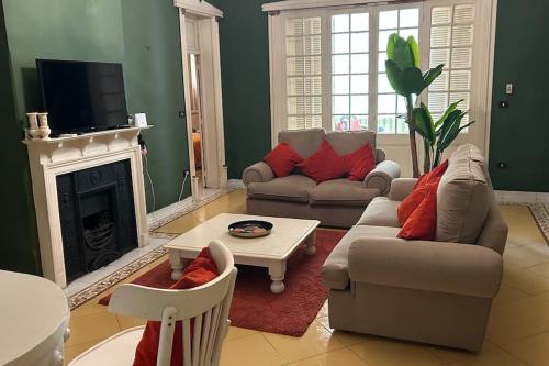 这家空调公寓配有1间独立卧室、带冰箱和烤箱的设施齐全的厨房以及2间浴室。这家公寓也为客人提供2间浴室。