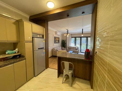 这家空调公寓配有1间独立卧室、带冰箱和烤箱的设施齐全的厨房以及3间浴室。3间浴室提供热水浴池和吹风机。