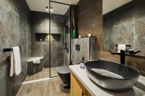 这家空调公寓配有2间卧室、起居室、带冰箱和咖啡机的设施齐全的厨房以及1间带淋浴设施和热水浴池的浴室。1间浴室配有浴缸,也配有免费洗浴用品,提供毛巾和床上用品。