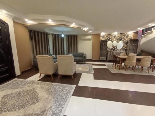 Villa For Rent享有花园景,提供露台和阳台,距离吉萨金字塔约有26公里。这家别墅还配有私人泳池和免费WiFi。