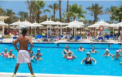 MIRAGE BAY@RESORT&AQUAPARK坐落于赫尔格达,靠近贾兹海蓝宝石海滩(Jaz Aquamarine Beach),配备自助式住宿、户外游泳池、汽车租赁、私人海滩、花园和餐厅。这家住宿位于海滨,拥有酒吧和免费WiFi。
