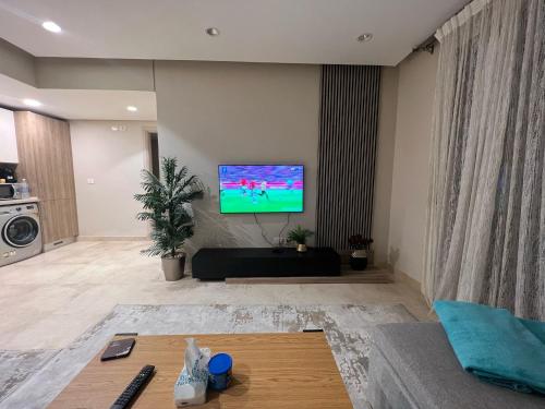 这家空调公寓配有1间卧室、起居室、带冰箱和咖啡机的设施齐全的厨房以及1间带坐浴盆和淋浴设施的浴室。这家公寓还提供平板电视、休息区、洗衣机以及1间带浴缸的浴室。