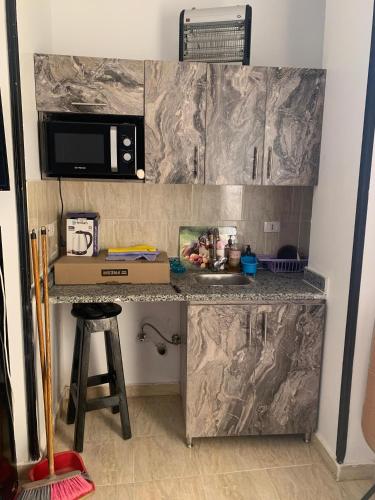 这家公寓式酒店享有山景,为客人提供露台、休息区、平板电视、带冰箱和微波炉的设施齐全的小厨房以及带坐浴盆的私人浴室。住宿配备炉灶和电热水壶。