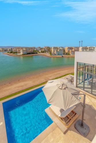 Ascot Bay, Premium 5BR Lagoon Beach House & Pool in Tawila, El Gouna位于赫尔格达,提供带免费WiFi的山景客房,配备户外游泳池、花园和私家海滩。这家住宿提供私人泳池和免费私人停车位。