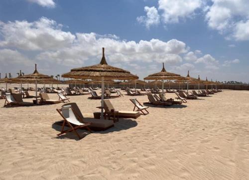 Hacienda Bay 5 bedrooms North Coast Senior Chalet Alamainالساحلالشمالي坐落于阿莱曼的Sidi Abd El-Rahman,距离波尔图码头仅有31公里,配有季节性室外泳池、花园、露台和餐厅。这家小木屋配备免费私人停车位和客房服务。