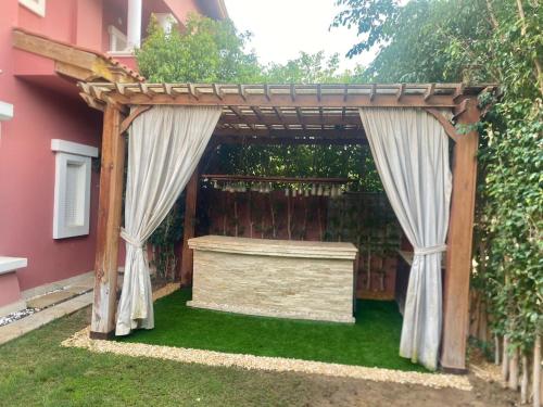 这家别墅提供露台,享有花园景,配有1间卧室、起居室、平板电视、带迷你吧的设施齐全的厨房以及4间带热水浴池的浴室。这家别墅也为客人提供4间浴室。