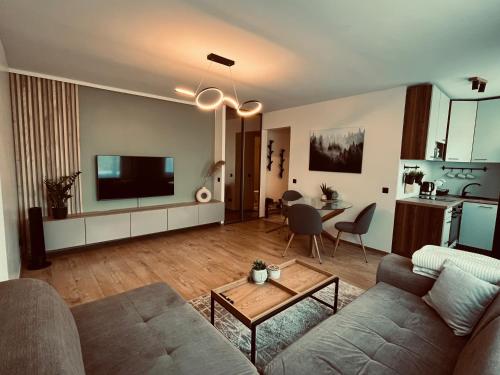 这家公寓配有2间卧室、起居室、带冰箱和咖啡机的设施齐全的厨房以及1间带淋浴设施和免费洗浴用品的浴室。这家公寓还配备休息区、洗衣机以及1间带吹风机的浴室。