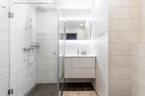 这家公寓配有1间卧室、起居室、带冰箱和咖啡机的设施齐全的厨房以及1间带淋浴设施和吹风机的浴室。这家公寓也配有休息区和1间浴室。