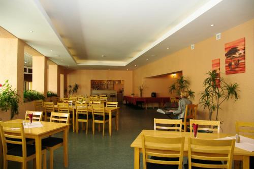 Guests can relax in the lobby, where they can access the free WiFi. An outdoor terrace by the pool is also at guests’ disposal.