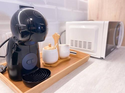 这家公寓配有1间卧室、起居室以及1间带吹风机和淋浴设施的浴室。这家公寓也配有休息区和1间浴室。