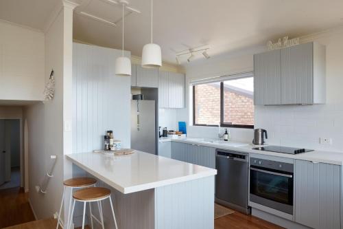 Sea Haven - Belle Escapes Jervis Bay坐落于文森提亚,距离科林伍德海滩(Collingwood Beach)仅有12分钟步行路程,提供健身中心、烧烤设施和免费WiFi。这家度假屋配有阳台。客人可以在周边地区体验徒步、打高尔夫和垂钓等活动。