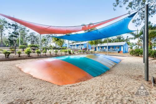 Guests can take a dip in the swimming pool and kids will love the inflatable jumping pillow. You can dine at the onsite cafe, or stock up on supplied from the onsite shop to prepare a meal in the camp kitchen.