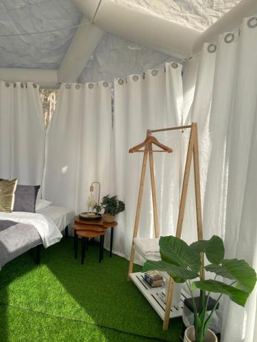 这家豪华帐篷提供毛巾和床上用品。