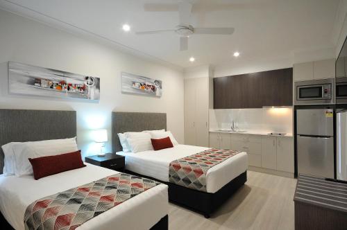 汽车旅馆的每间一室公寓均提供1间带冰箱、微波炉和炉灶的小厨房。普通公寓提供1间带洗碗机的设备齐全厨房以及1个带沙发和平板电视的独立起居区。