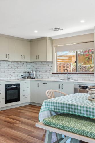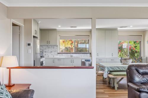 Panoramic Scenic Views of Preston Beach - Delightful Family Holiday Home享有湖景,提供阳台和咖啡机,距离普雷斯顿海滩(Preston Beach)约有12分钟步行路程。内部提供私人停车位。