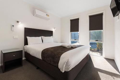别墅内配有微波炉、烤面包机、水壶、淋浴、免费洗浴用品和衣柜。客房配有空调和平板电视,度假村的一些客房可欣赏湖景。Moama Waters度假村的所有客房均设有一个休息区。