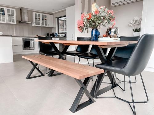 这家空调度假屋配有3间卧室、起居室、带冰箱和咖啡机的设施齐全的厨房以及2间带淋浴设施和吹风机的浴室。这家度假屋也配备休息区和2间浴室。