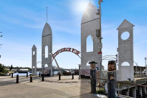 Pier Point 404- Luxe on Geelong Waterfront, 2 BDRM坐落于吉朗,拥有阳台,距离吉朗火车站仅不到7分钟步行路程,距离南吉朗车站有1.9公里。这家空调住宿距离东部海滩(Eastern Beach)有9分钟步行路程,为客人提供免费WiFi,内部提供私人停车位。