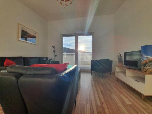 这家公寓提供露台,享有山景,拥有2间卧室、起居室、平板电视、带冰箱和洗碗机的设施齐全的厨房以及1间带淋浴设施的浴室。1间浴室配有浴缸,也配备吹风机,提供毛巾和床上用品。