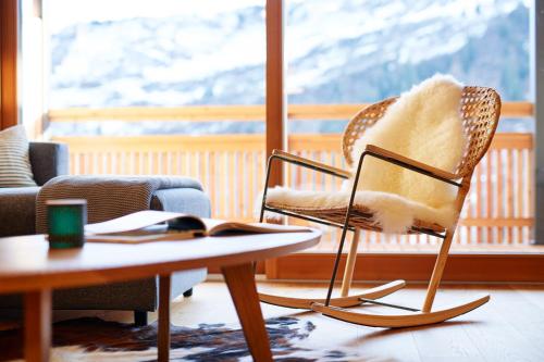 这家公寓配备滑雪至门口雪道和滑雪设备存放处。