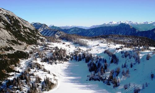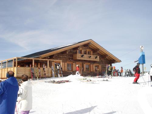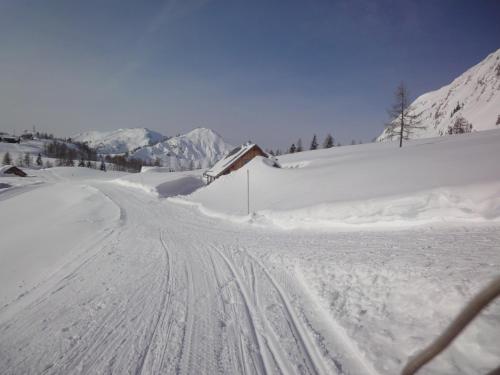 Gindlhütte位于Tauplitzalm,享有山景,提供滑雪至门口雪道。