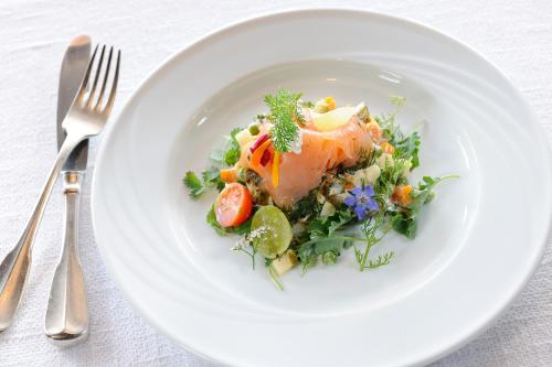 餐厅供应带有机产品的当地美食,包括来自酒店私人花园的香草。半膳服务包括带汤和沙拉的自助午餐以及四道菜晚餐。