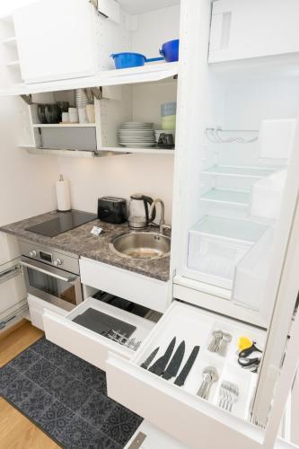 这家公寓配有1间卧室、起居室、带冰箱和咖啡机的设施齐全的小厨房以及1间带浴缸和免费洗浴用品的浴室。这家公寓还配备休息区、洗衣机以及1间带吹风机的浴室。