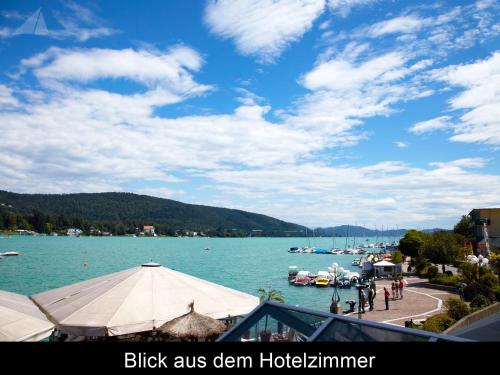 Veldener Traumschiff酒店位于Velden的湖岸长廊,靠近码头和Velden Castle城堡。