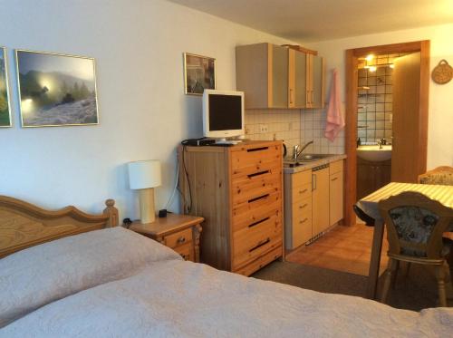 这家旅馆的客房均配备带卫星频道的平板电视。每间客房都配有电热水壶以及带淋浴设施和免费洗浴用品的私人浴室。部分客房配备配有带冰箱的小厨房。Double room with a kitchenette and private bathroom in a beautiful surrounding的每间客房都配备床上用品和毛巾。
