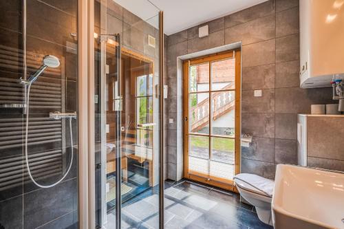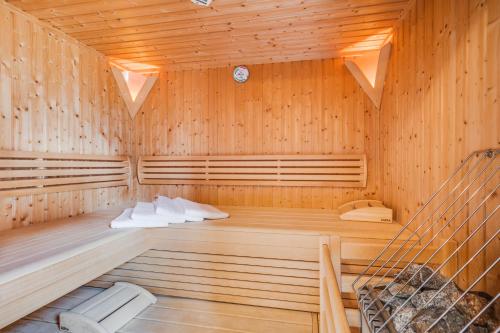 这家小木屋拥有露台、3间卧室、3间浴室、设施齐全的厨房、平板电视和桑拿浴室。这家小木屋也配有3间浴室。