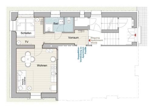 这家公寓配有1间卧室、起居室、带冰箱和咖啡机的设施齐全的厨房以及1间带淋浴设施和免费洗浴用品的浴室。这家公寓也提供休息区和1间浴室。