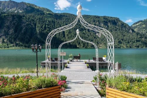 Via Salina酒店位于Nesselwängle的Tannheim Valley,坐落于Haldensee lake湖畔。部分客房拥有享有湖景和山景的阳台。