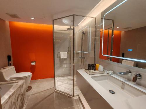 每间多彩的现代化客房均配有保险箱和迷你吧,提供拖鞋和浴袍。