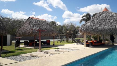 这家别墅提供儿童游乐区。客人可以在室外泳池游泳,体验徒步或垂钓,或在花园内放松身心,还可以使用烧烤设施。
